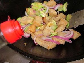 - 加入面筋、角瓜和豆腐,翻炒均匀。